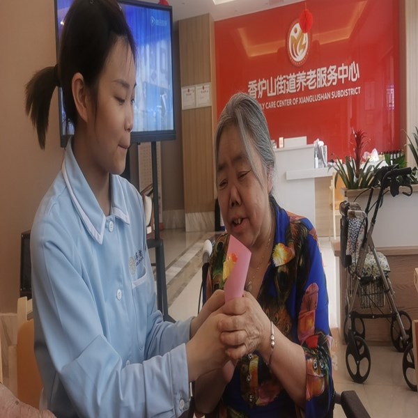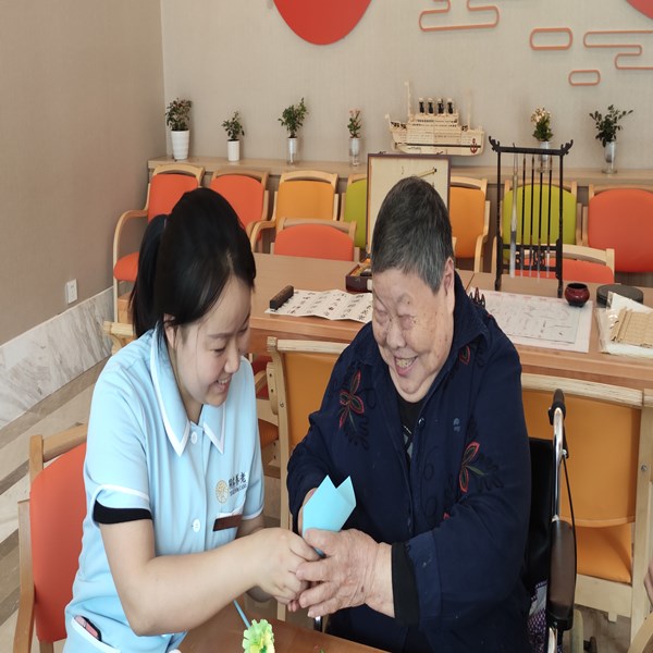 工作人员正耐心地教长者制作花朵