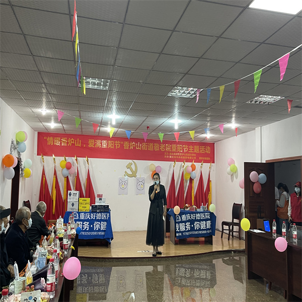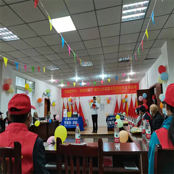 重阳节,是中国传统节日,节期为每年农历九月初九。传承至今,又添加了敬老等内涵,于重阳之日享宴高会,感恩敬老。登高赏秋与感恩敬老是当今重阳节日活动的两大重要主题。为了响应国家尊老敬老的号召,由香炉山街道主办,香炉山街道养老服务中心和好德医院承办,与香炉山敬老院联合庆祝重阳节。在欢庆节日的同时,街道领导为敬老院老人送去节日慰问,送上来自街道的关怀和祝福。