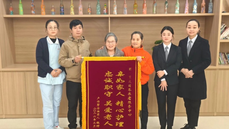 百岁长者吴素芳的家属专程将书写赞誉的锦旗送至同岑养老。这鲜红的锦旗,不仅承载着长者与家属由衷的感谢与肯定,更映照出我们日夜坚守的初心与担当。这份褒奖背后,是毫无保留的信任,是性命相托的嘱付。我们将倍加珍视这份信任,以此为动力,持续精进,以更温暖的心、更专业的手,守护每一位长者的岁月静好。